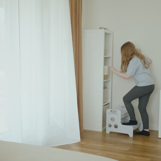 Give your little one independence in everyday routines with this 2-in-1 wooden footstep and chair—perfect for brushing teeth, helping in the kitchen, or reaching the sink.