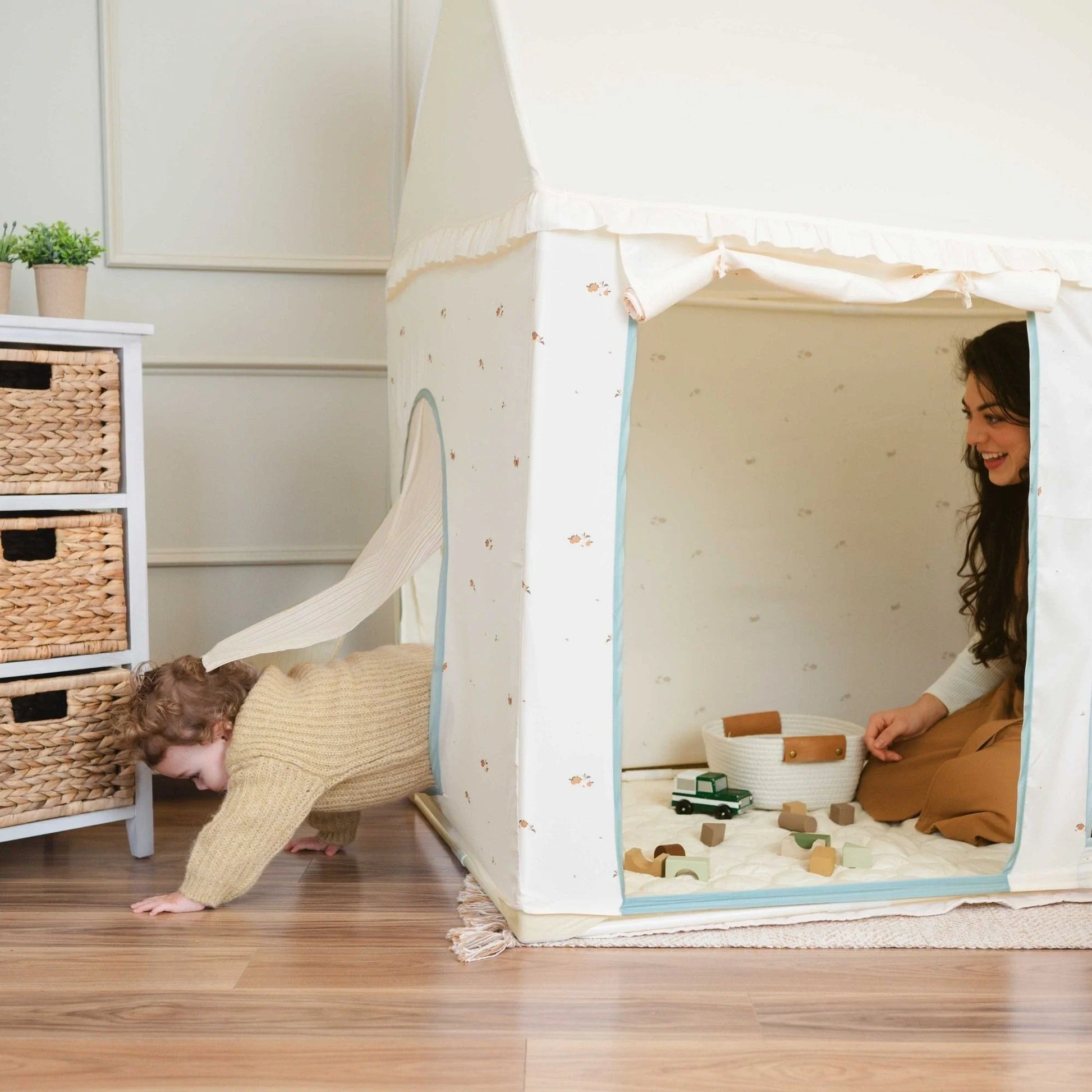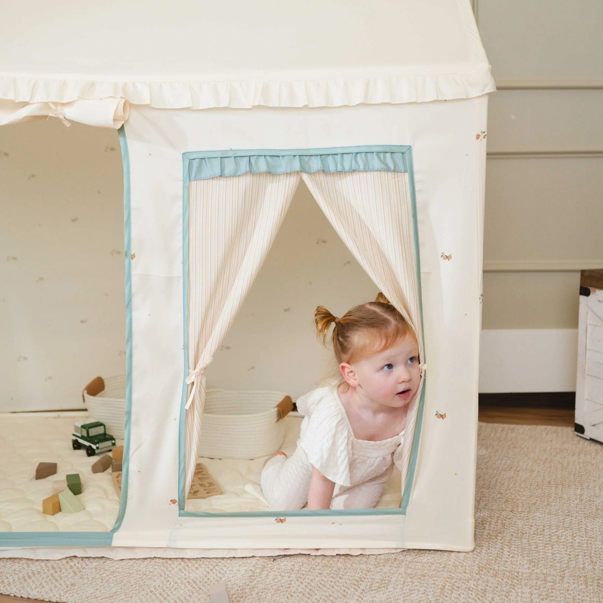 Tiny Land® Sweet Citrus Kids Play Tent – White and Blue Indoor Playhouse