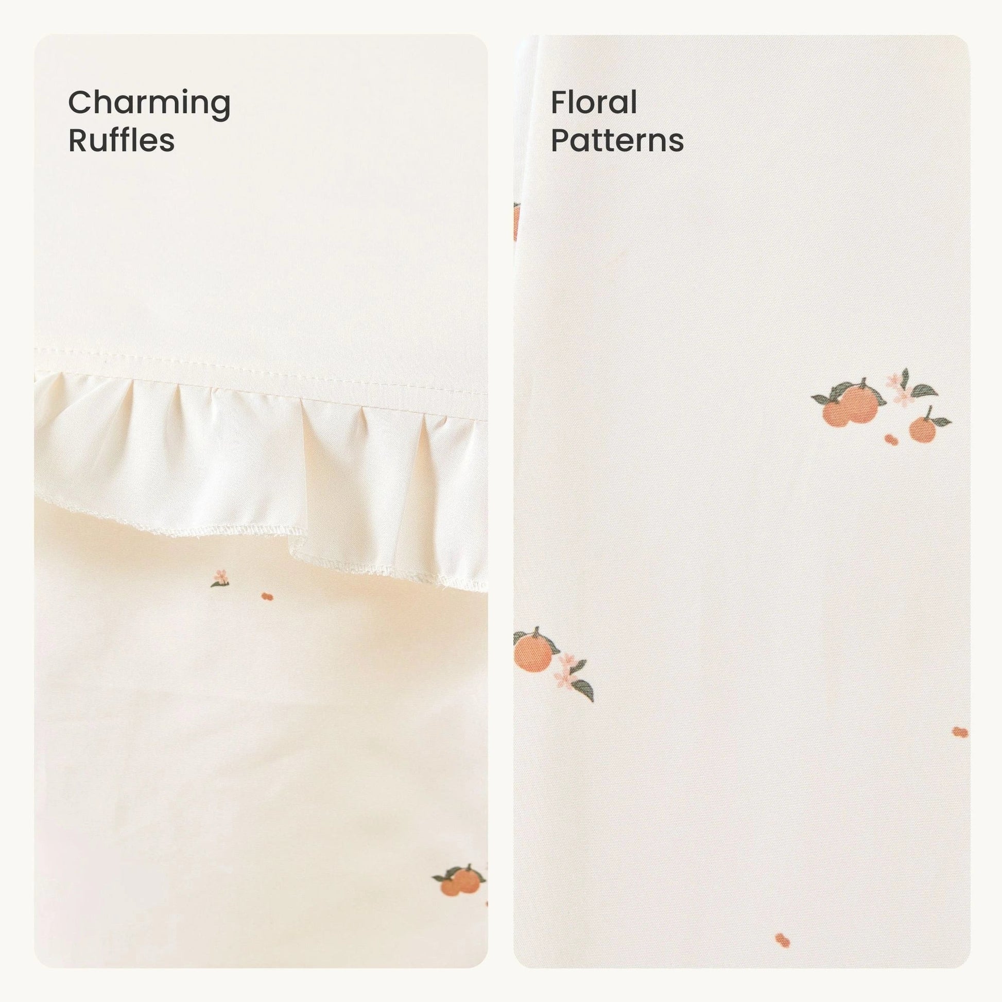 - Vibrant citrus pattern adds a sunny, cheerful vibe to any playroom or nursery